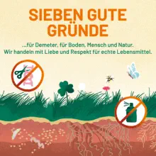Der Demeter e.V. ist der älteste Bioverband in Deutschland. Schon seit 1924 bewirtschaften Demeter- Landwirte ihre Felder biodynamisch. Aufgrund der lebendigen Kreislaufwirtschaft gilt die Demeter-Landwirtschaft als nachhaltigste Form der Landbewirtschaftung und geht weit über die Vorgaben der EU-Öko-Verordnung hinaus. Die Biologisch-Dynamische Wirtschaftsweise geht auf Impulse Rudolf Steiners zurück, der Anfang des 20. Jahrhunderts auch Waldorfpädagogik und anthroposophische Heilweise initiierte.